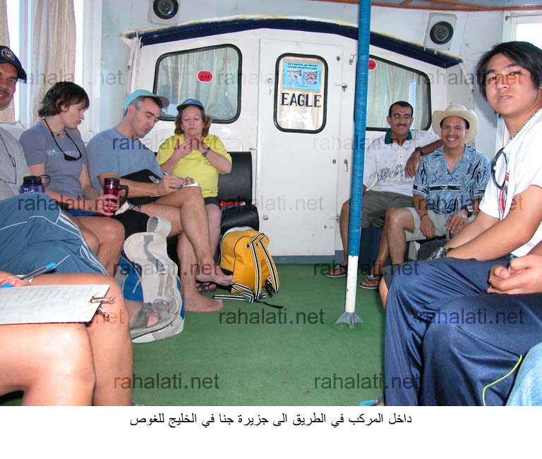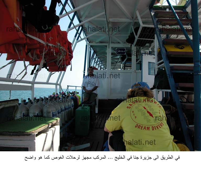 في شهر أغسطس من سنة 2004 نسق نادي الغوص في أرامكو بالعضيلية رحلة غوص الى جزيرة جنا و التي عادة تكون في نهاية اسبوع و لمدة يوم. دور منسق الرحلة يكمن في التنسيق مع صاحب المركب و مع ادارة النقل في ارامكو لنقل المشاركين بالباص من العضيلية الى ميناء الجبيل. الطريق من العضيلية يستغرق ما يقارب الثلاث ساعات مما يستوجب الانطلاق في ساعة مبكرة صباحا.